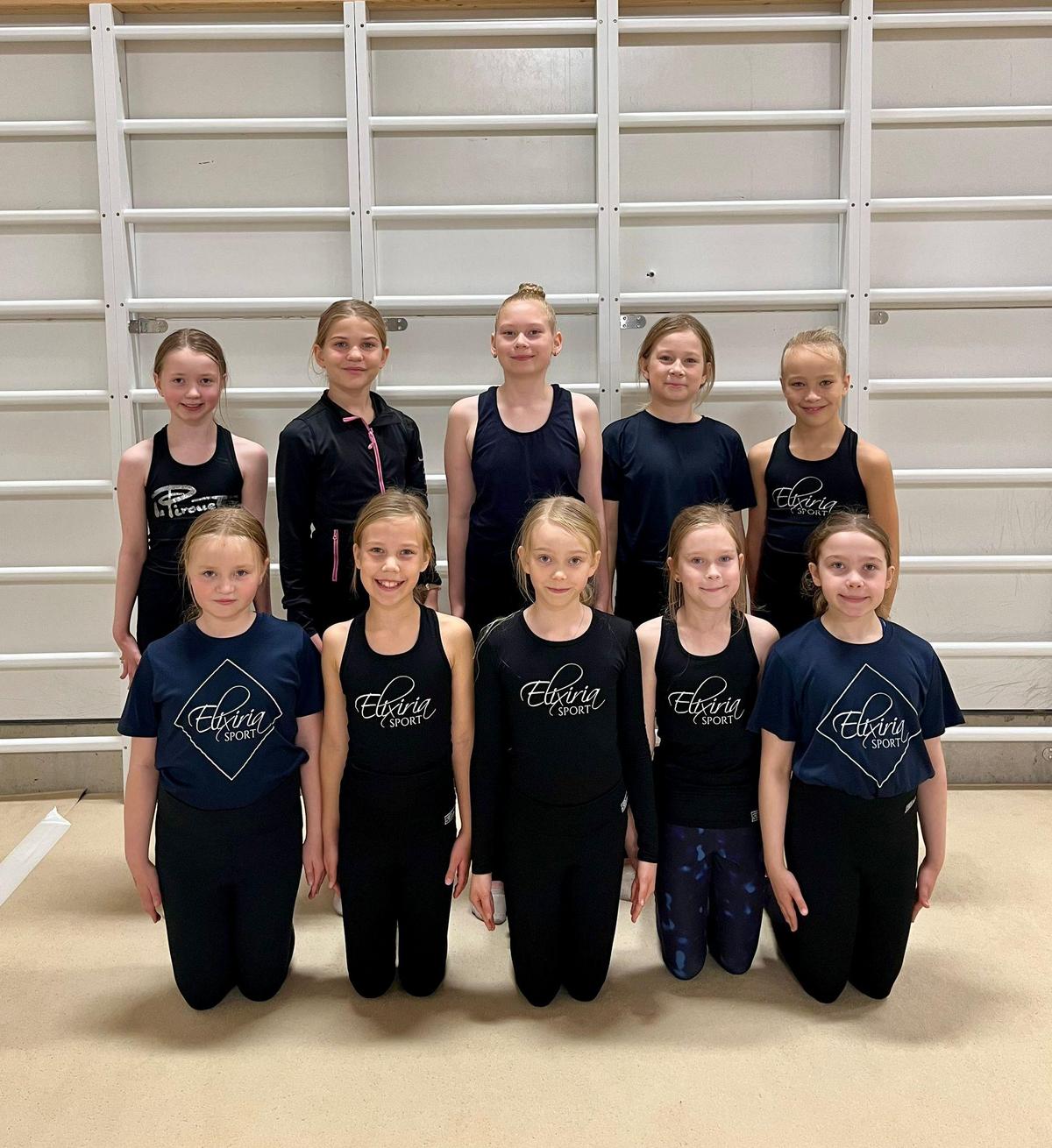 Exea kilpailee 8-12-vuotiaiden sarjassa. Voimistelijat harjoittelevat tavoitteellisesti 3-4 kertaa viikossa.