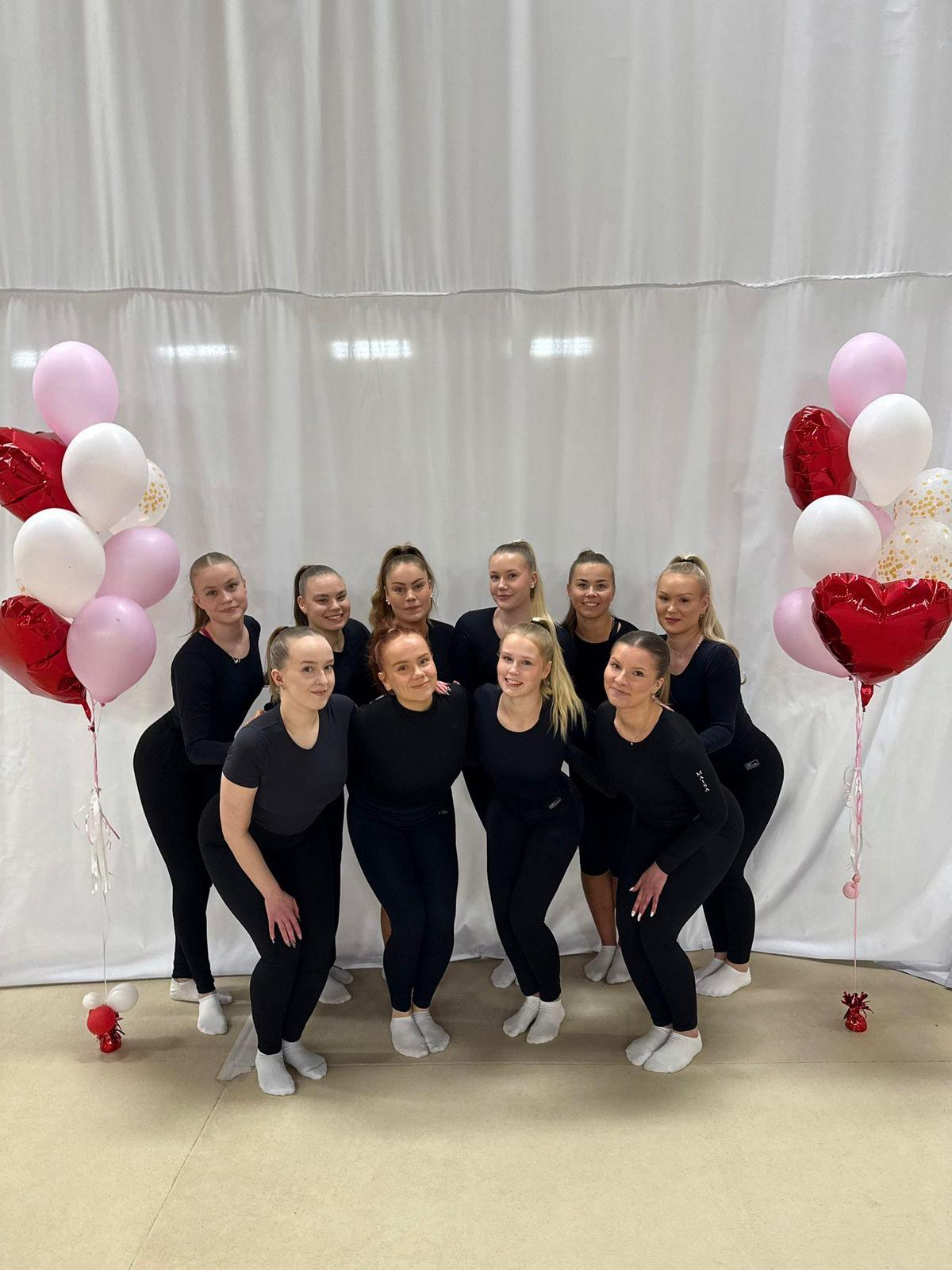 Joukkue kilpailee yli 18-vuotiaiden sarjassa. Joukkue harjoittelee noin kerran viikossa upealla vuosien voimistelukokemuksella.
